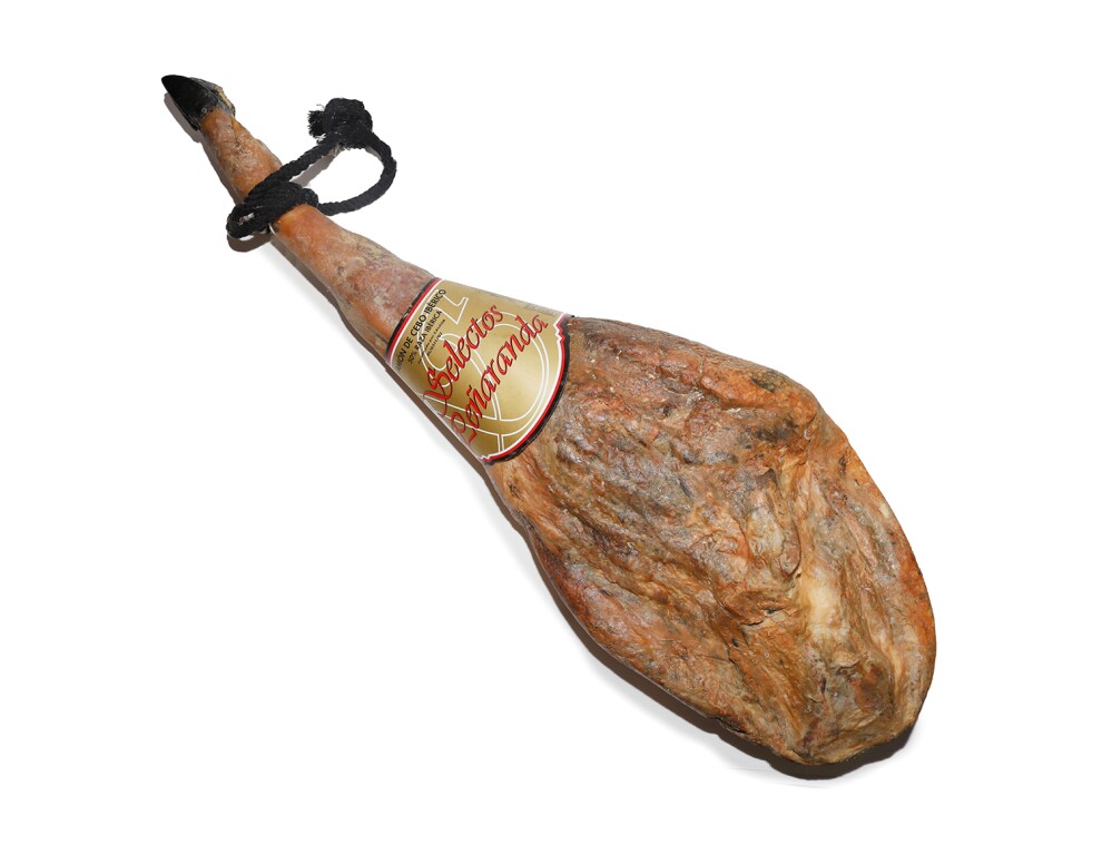 Описание: Хамон Иберико De Cebo Selectos – это великолепный премиальный окорок. Срок вяления не менее 24 месяцев. Чистота иберийской породы – 50%. На каждой ноге есть специализированная бирка, подтверждающая её оригинальность.