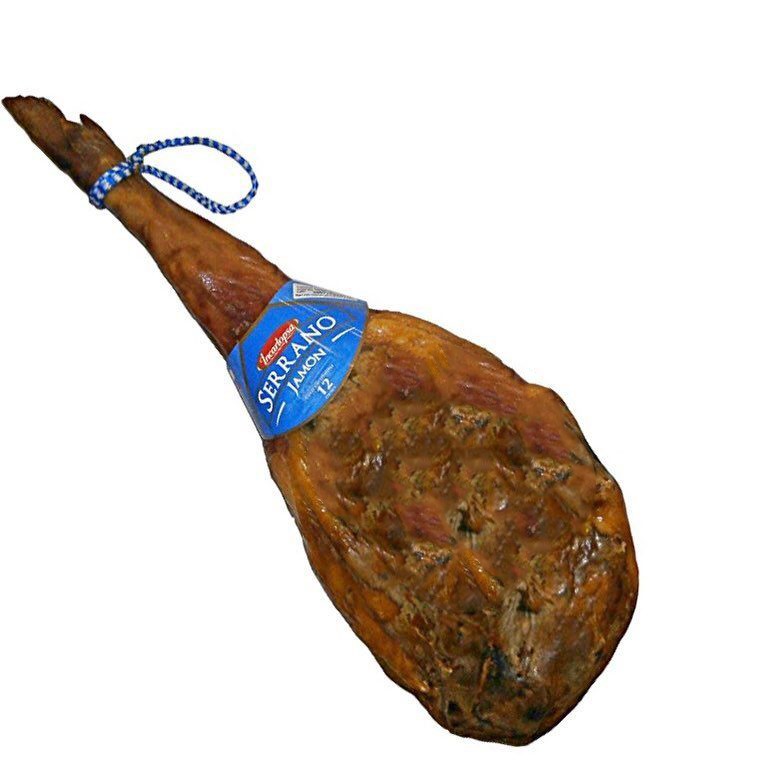 Описание: Incarlopsa – это крупнейший концерн по производству мясных деликатесов, основанный более 130 лет назад в Испании. Хамон Серрано Original изготавливается из тщательно отобранных свиней чистой породы, с использованием очень малого количества соли, выдерживается в естественных помещениях для сушки. Нога хамона с копытцем с традиционным "V" разрезом. Вкус мяса сочный, с тонкими прослойками жира.