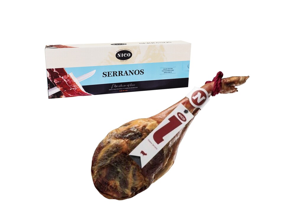 Описание: Окорок на кости Серрано Палета – передние ноги от торговой марки Nico Jamon произведённый в Испании. Его изготавливают из тщательно отобранного мяса чистой породы свиней, полученных путем скрещивания хряков породы крупных белых свиней. Для вяления используются естественные подвалы для сушки. Палета вялится в естественных погребах.