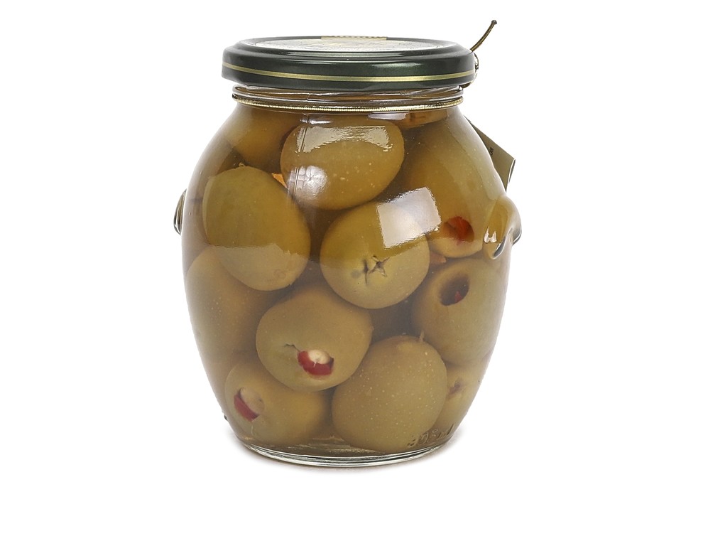Состав: Оливки зеленые гигант, красный перец, вода, соль, лимонная кислота