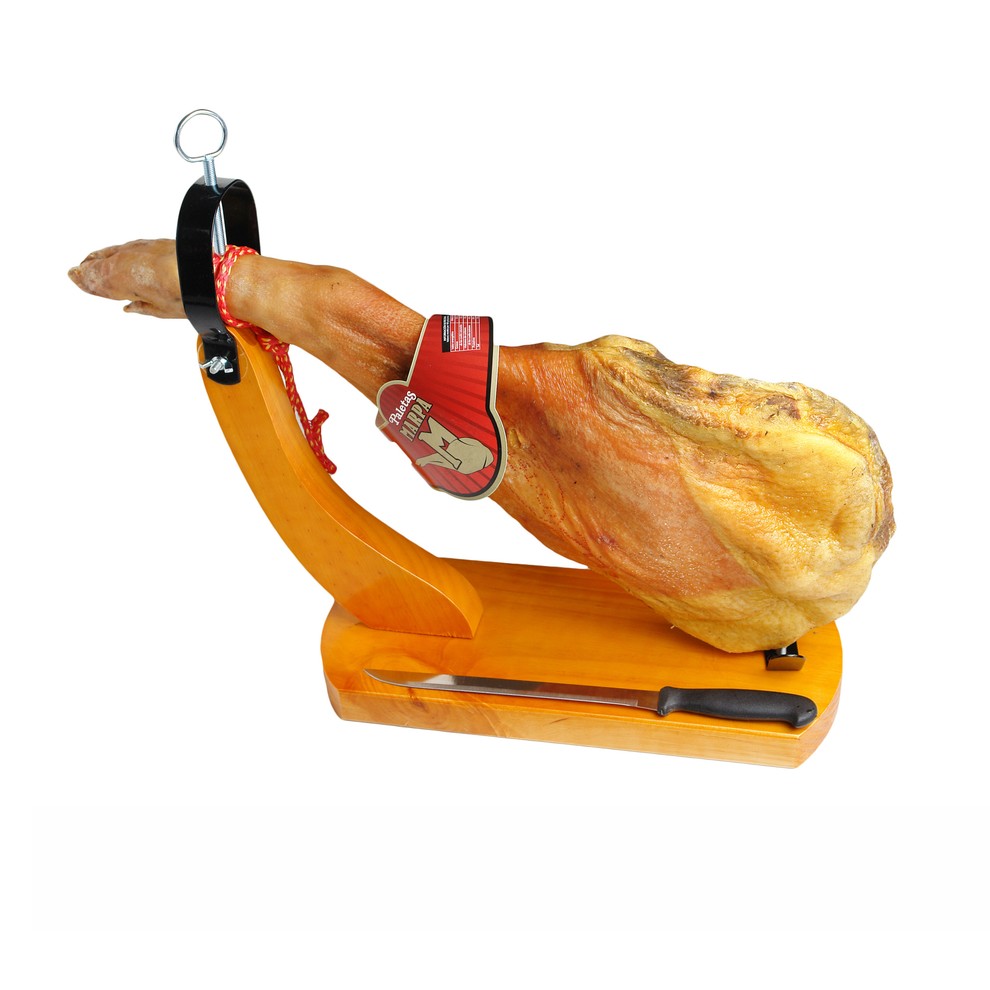 -Палета Серрано, бренда Marpa произведена из передних ног свиней. Достойный выбор для любителей вкусного вяленого деликатеса. Вкус мяса в меру соленый. Нога упакована в индивидуальный хлопковый мешок;